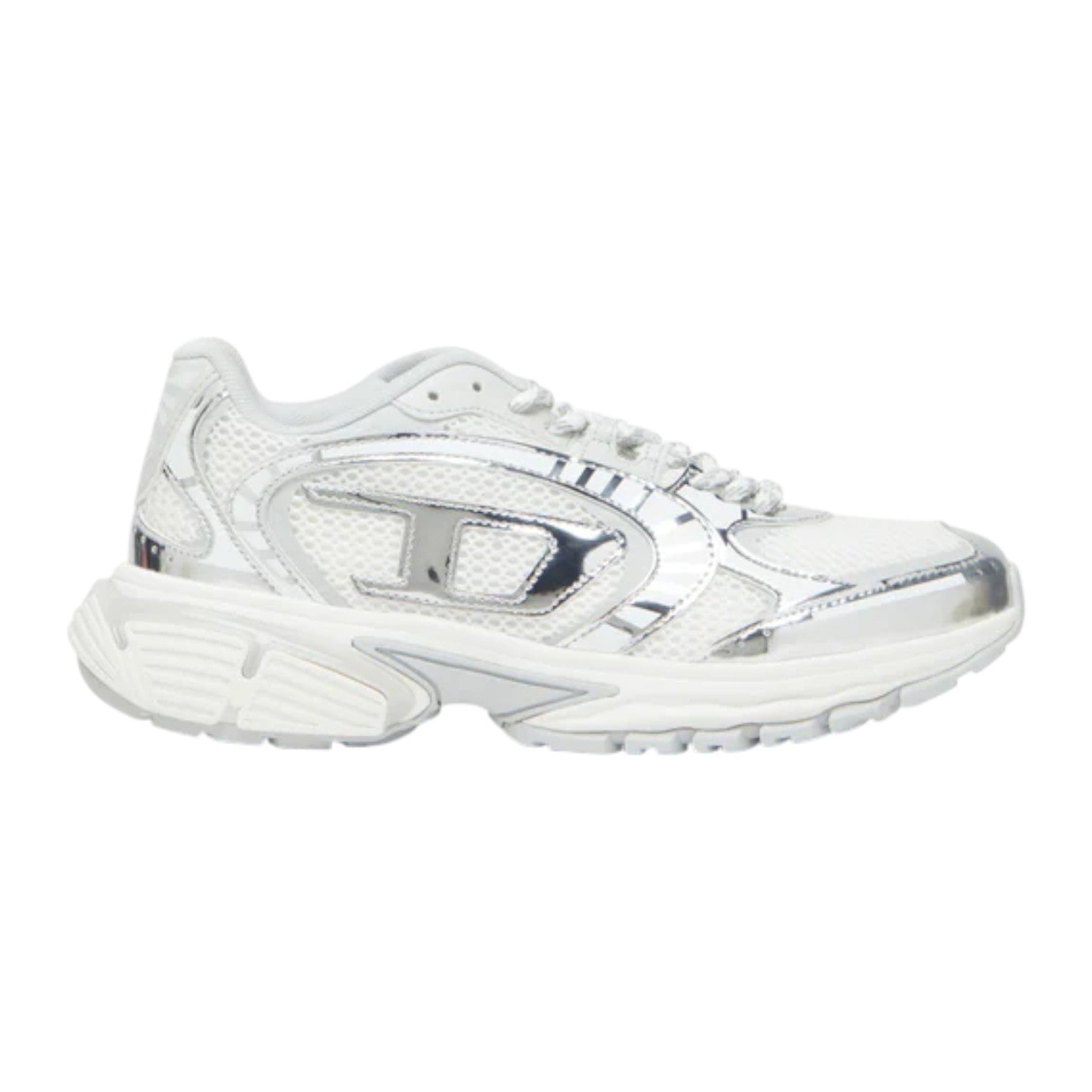 Add futuristic edge to your footwear collection with the Diesel S-Pro-V-Dense Metallic Mesh Women’s Sneakers in White and Silver. Designed with modern streetwear flair, these sneakers feature a breathable mesh upper with metallic overlays for a bold, fashion-forward look.